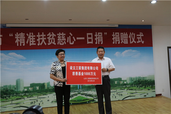 參加濟(jì)南市“精準(zhǔn)扶貧慈心一日捐” 設(shè)立“三箭集團(tuán)愛心慈善基金”