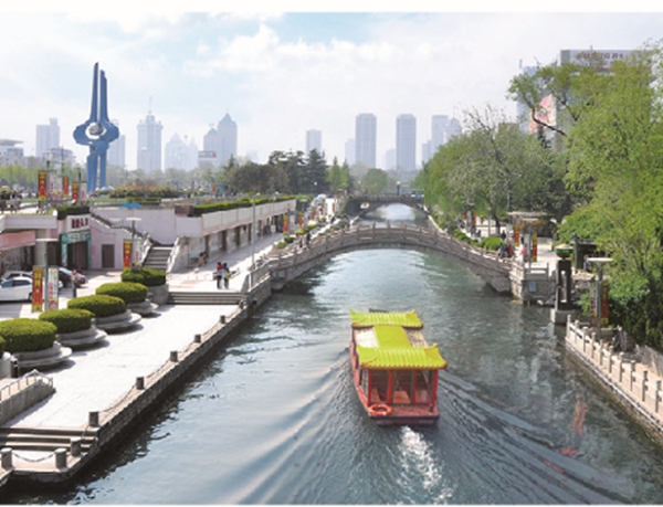 泉城廣場是濟南市的中心廣場。廣場位于市中心繁華地帶,處于“千佛山――趵突泉――大明湖”著名特色旅游區(qū)的中心,東起南門大街,西至趵突泉南路,南臨濼源大街,北依環(huán)城公園,東西長780米,南北寬230米,占地總面積約16.96萬平方米,新建建筑6.8萬平方米,地上花崗巖鋪設13萬平方米,綠化面積5.6萬平方米,工程概算總投資為13.5億元。整個泉城廣場自西往東由趵突泉廣場、南北名士林、泉標廣場、頤天園和童樂園、下沉廣場、歷史文化廣場、濱河廣場、荷花音樂噴泉、文化長廊、四季花園、科技文化中心等十余部分組成。